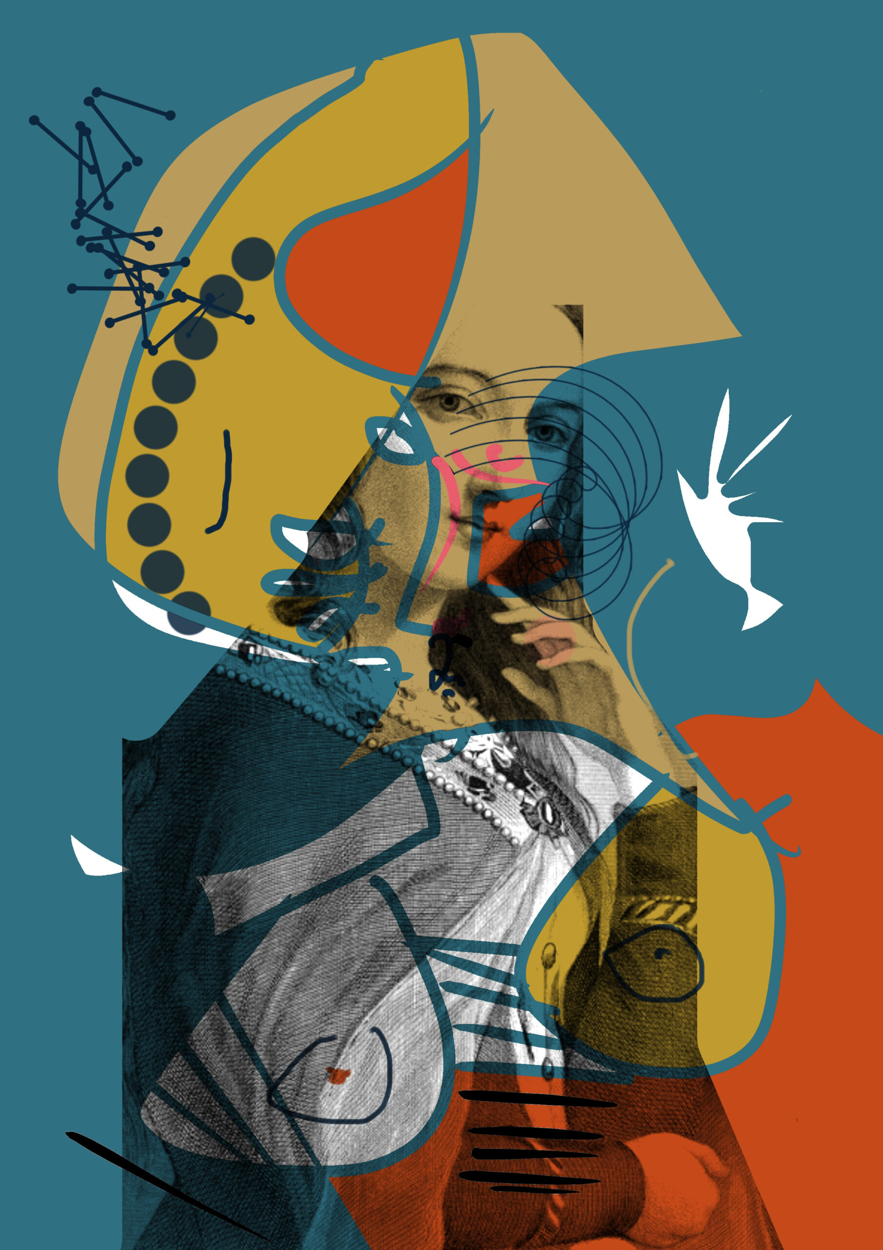 BG: Everything I do starts as a doodle. It starts as a loose drawing and then I’ll work on say, a hand, or an eye, and then I pull it all together. Actually a lot of it happens by accident. I was reading a book on Francis Bacon and it turns out that in most of his paintings he just followed what happened to the brush. My work’s quite similar to that. Making my accidents work. I often think what if Picasso had had a computer? He’s left it to me to play conceptually. My idea from when I first started as an illustrator was to ‘excite the eyeballs’ and that’s what I try to do. When you look at something I’d like you to think ‘wow! I’ve not seen anything like that before’ in terms of the colours, the composition; how I technically do it is to work in and around the space that I’m drawing within the drawing itself.