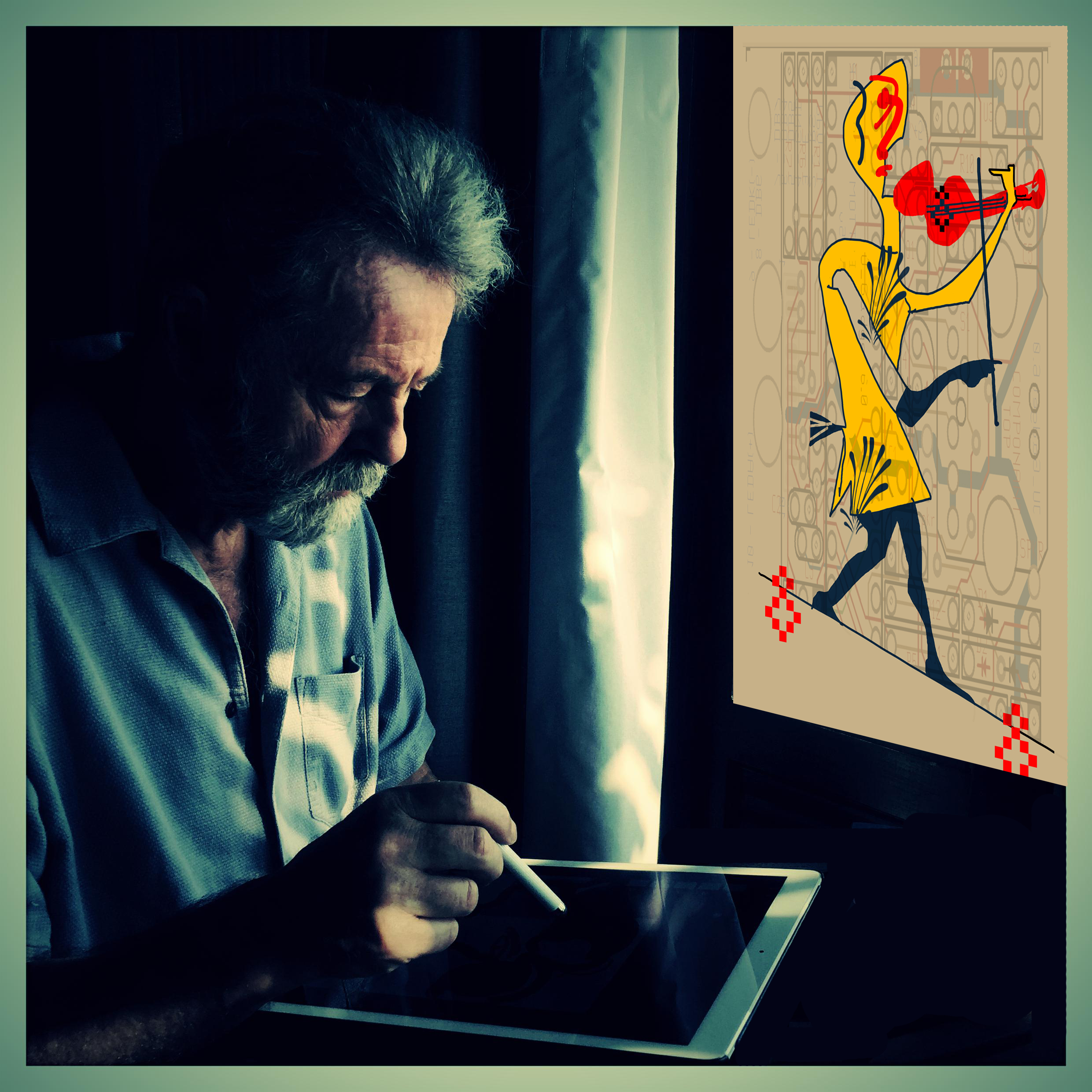 He migrates effortlessly from traditional media to the digital canvas.