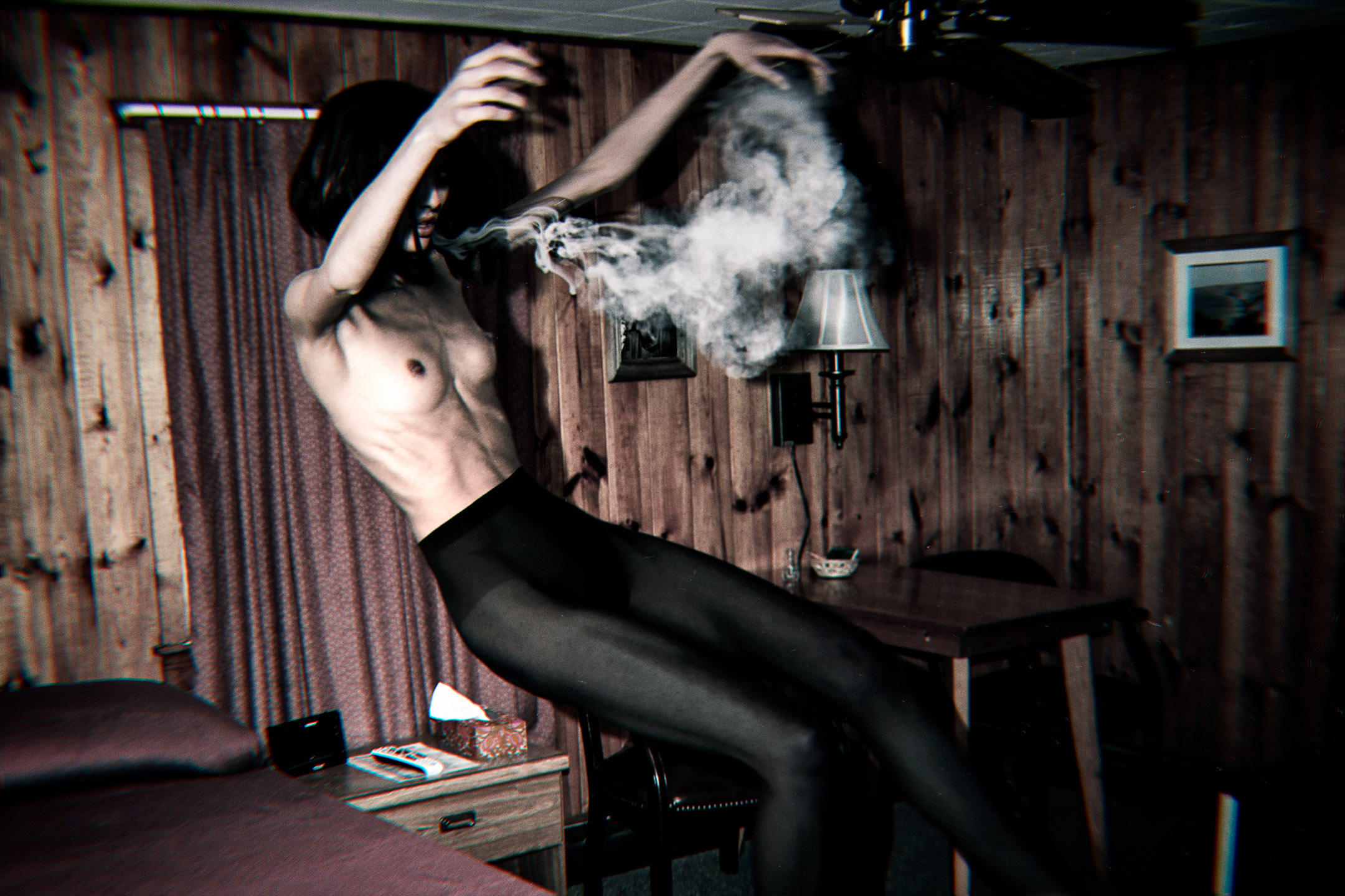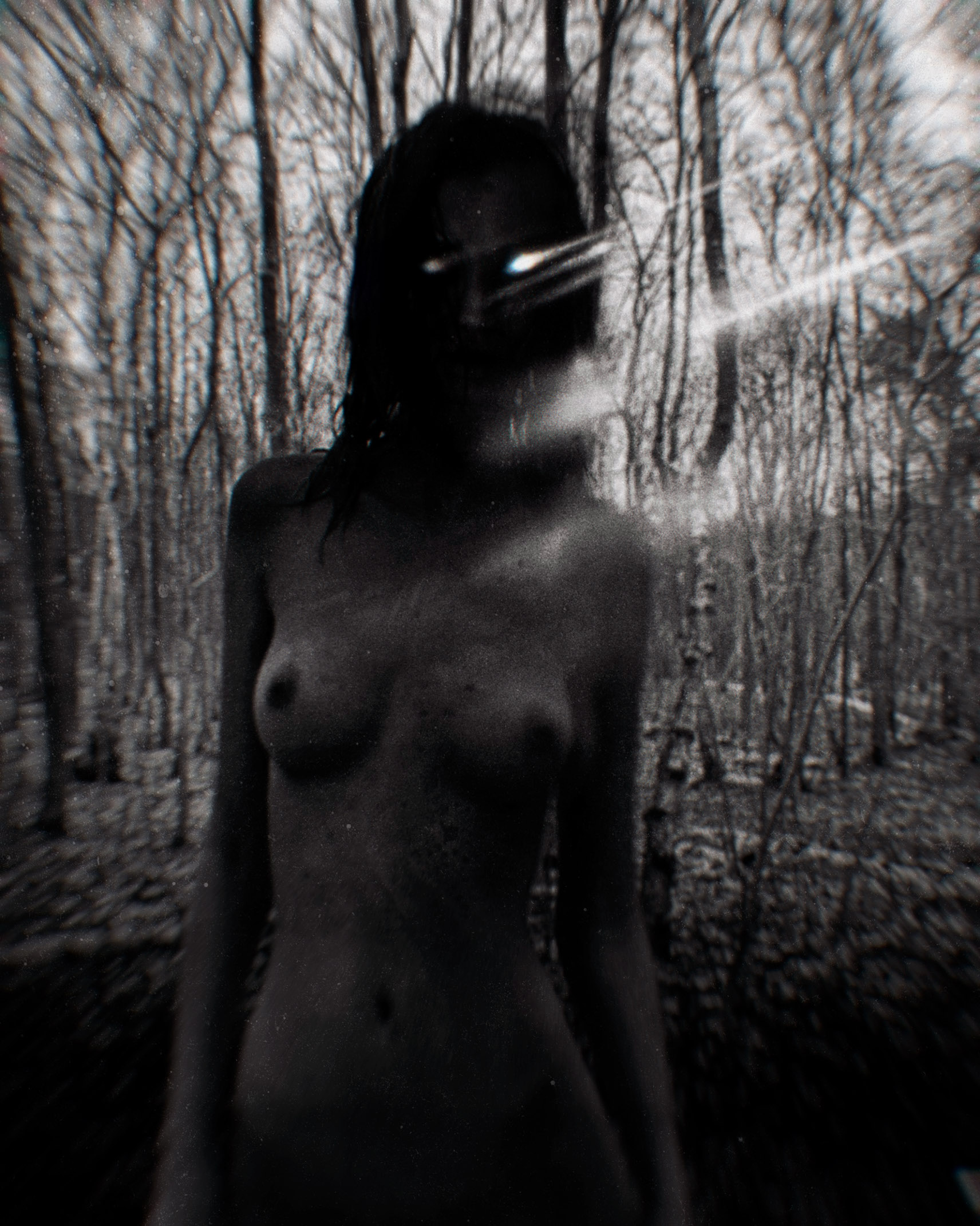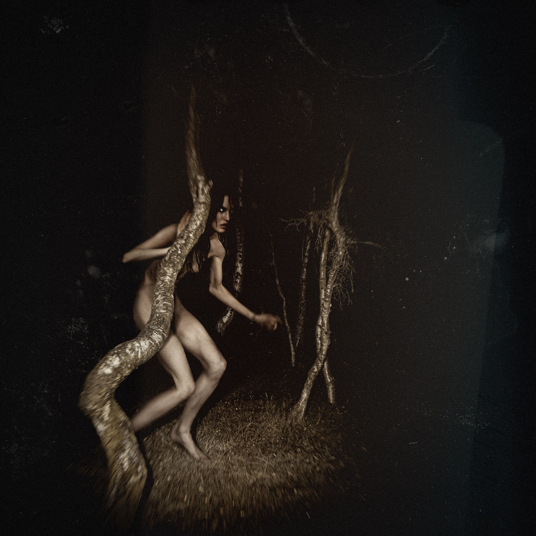 Perhaps ironically (to me) and, in fact hugely healing, was being commissioned by Suspira magazine which is a niche British publication that looks at the horror genre though a feminist lens. I have always felt that my work celebrated feminine sexuality and power but I guess my inner critic had his/her doubts! When Suspira saw this work they loved the images of wild, powerful and supernatural women running in the night and asked me to make some work for them. To be commissioned by a feminist magazine felt like completing a very long and wide circle; some internal mechanism kind of quietly tipped or clicked or moved in some way and one day I was developing a photograph with the intention of adding a figure when I saw that the image had so much atmosphere in and of itself, that putting in a ‘witch’ was maybe unnecessary. Since then I have focussed on trying to capture and distill the atmosphere of a forest at night. Maybe there’s something out there in the dark, or maybe not….
